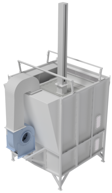 The MMC First Process CO2 strippers are designed to remove CO2 from water with high efficiency onboard vessels or on land based facilities. The CO2 strippers uses the newly designed X-AIR™ element unit and uses the crossflow principle. The water is flowing downwards while the air is flowing sideways. This results in a CO2 stripper with very high water flow capacity, while maintaining a good stripping efficiency. This design has been tested to provide consistently 60-70 % efficiency over long periods of time, and the foam generation is considerably lower than previous designs. The element unit can be lifted out of the CO2 stripper for easy cleaning, and the X-AIR™ element unit is much easier to clean than the previous bio element unit. The cylinder lift option makes this even easier, with a hydraulic cylinder mounted inside the mid-column. Two securing beams on the top to enable personnel to safely enter the CO2 stripper from the access hatch on the side.