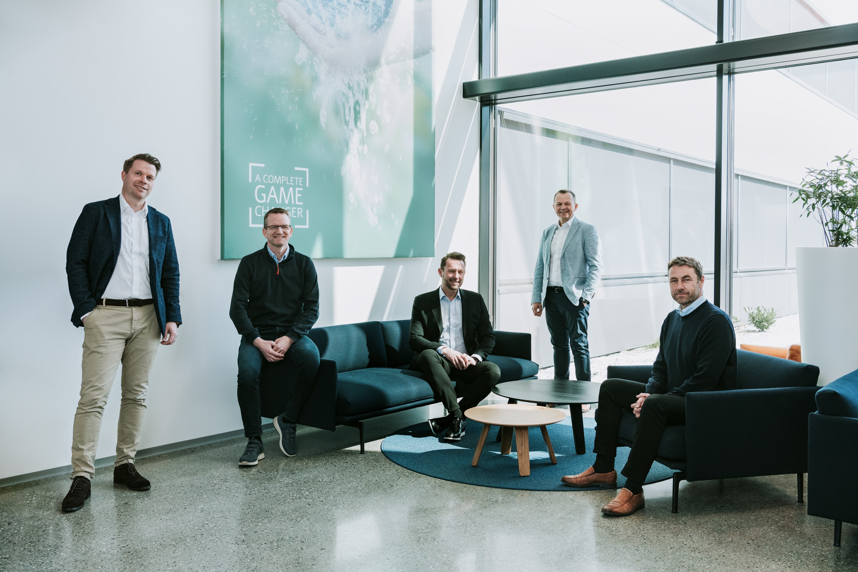 Fra venstre; Frank Edvard Vike (MMC First Process), Bjørnar Flem (Artec Aqua), Petter Leon Fauske, Børre Waagan (MMC First Process) og Asbjørn Skaro (Artec Aqua)