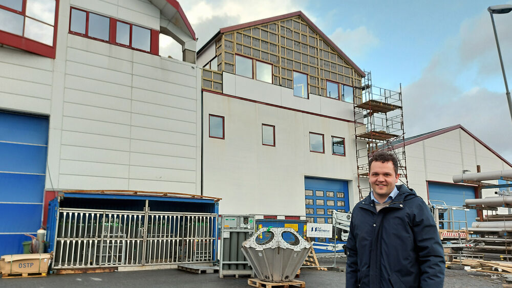 I desse dagar er dei i full gong med å gjere ferdig eit nytt bygg som skal romme 36 nye kontorplassar og nytt stort lager i kjellaren. Utvidinga er på 950 kvadratmeter og totalt vil bedrifta ha kring 5000 kvadratmeter til disposisjon på staden.